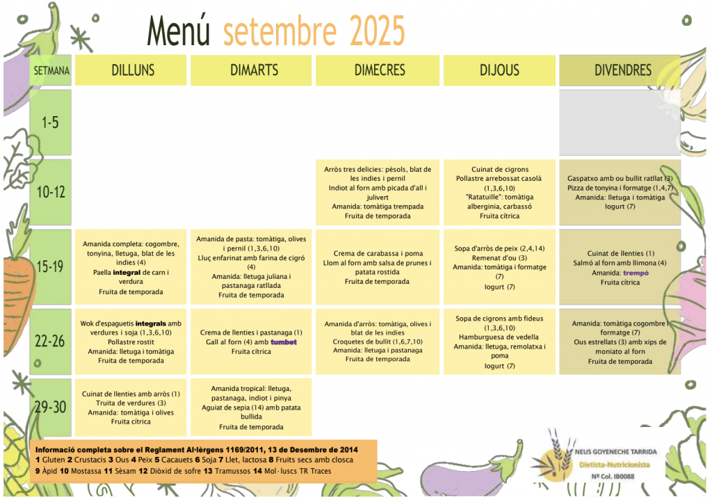Menjador escolar PREUS A PARTIR DE DIA 2 DE DESEMBRE DESEMBRE 2025 NOVEMBRE 2025 OCTUBRE 2025 SETEMBRE 2025 JUNY 2025 MAIG 2025 ABRIL 2025 MARÇ 2025 FEBRER 2025 GENER 2025 DESEMBRE 2024 NOVEMBRE 2024 OCTUBRE 2024 SETEMBRE 2024 JUNY MAIG MENÚ ABRIL MENÚ MARÇ MENÚ FEBRER MENÚ GENER MENÚ DESEMBRE MENÚ NOVEMBRE MENÚ OCTUBRE MENÚ SETEMBRE